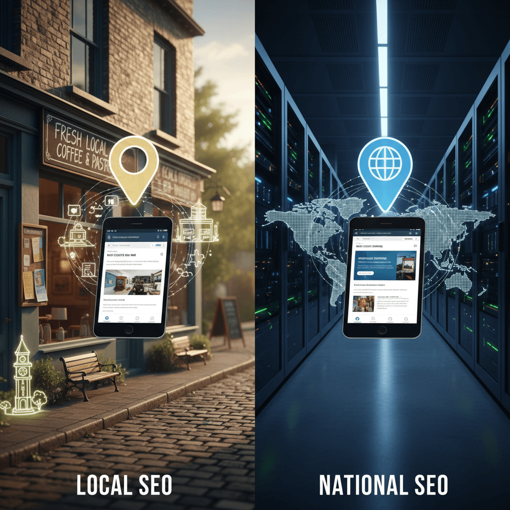 While both local and national SEO aim to improve your search engine rankings, they target different audiences and require distinct strategies. Here’s a quick comparison: